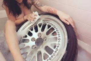 красотка моет авто диск